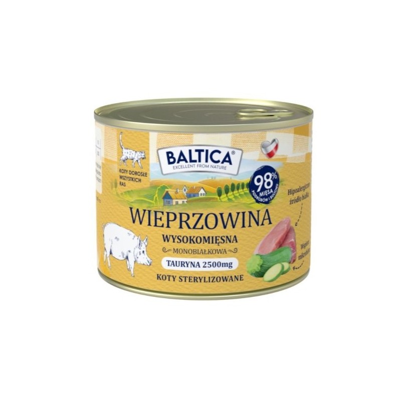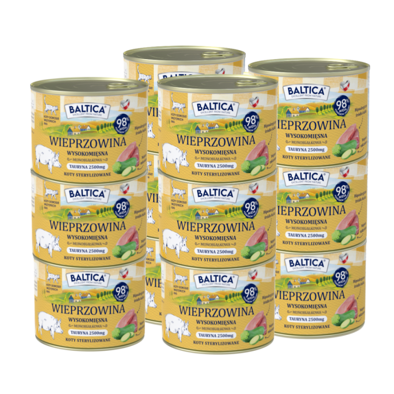 Bezzbożowa, monoproteinowa uczta stworzona na bazie wybornego mięsa wieprzowego. Karma mokra dla kotów opracowana z myślą o codziennym, świadomym żywieniu osobników dorosłych każdej rasy, w tym również po sterylizacji, z ograniczoną aktywnością oraz z wrażliwym przewodem pokarmowym.