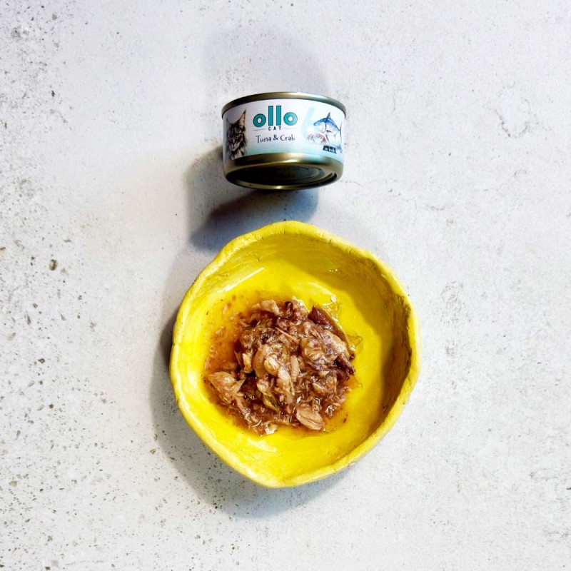 Ollo Nr. 6 Tuńczyk & Krab to wysokiej jakości mokra karma klasy premium stworzona z myślą o wszystkich kotach - od energicznych kociąt po dostojnych seniorów. Jej receptura bazuje na świeżym tuńczyku z dodatkiem kraba, które stanowią źródło pełnowartościowego białka i niezbędnych kwasów tłuszczowych. Dzięki naturalnemu składowi, bez sztucznych dodatków i zbóż, karma doskonale wspiera zdrowie, kondycję oraz prawidłowe funkcjonowanie organizmu kota, a jej wyjątkowy smak zadowoli nawet najbardziej wybrednych pupili.