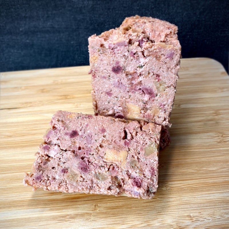 Skład: Jelenina 70% (mięso z jelenia), bulion, pasternak, olej z łososia 0,3%, rozmaryn, substancje mineralne.