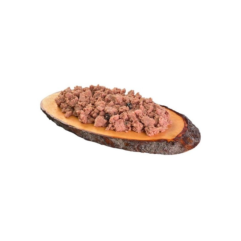 Skład: Mięso oraz narządy 85% (indyka 59%, struś 26%), jeżyny 4%, mąka grochowa 1%, lignoceluloza 1%, olej lniany 1%.
