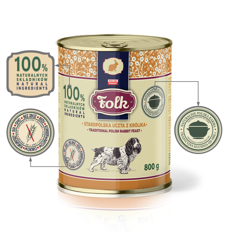 Najważniejsze cechy mokrej karmy FOLK Staropolska uczta z królika: