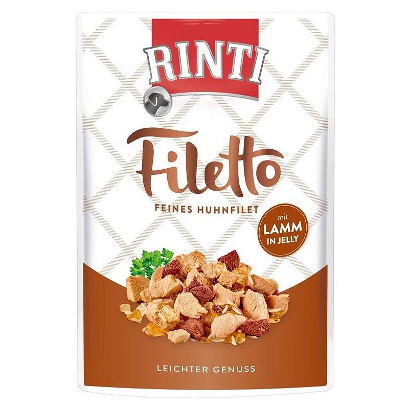 Mokra karma Rinti Filetto z kurczakiem i jagnięciną w galaretce jest naturalną karmą przeznaczoną dla psów dorosłych wszystkich ras. Wysokiej jakości karma składa się z delikatnego filetu z kurczaka z dodatkiem mięsa z jagnięciny. Receptura stworzona tylko z naturalnych składników, bez dodatku sztucznych barwników, bez konserwantów oraz bez dodatku soi.