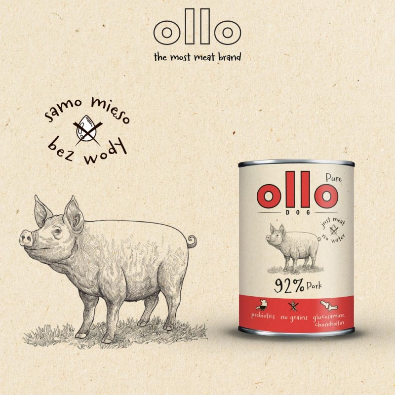 Ollo Pure Pork Wieprzowina to kompletna karma pełnoporcjowa dla psów dorosłych wszystkich ras. Bez dodatku wody czy buliony, by niepotrzebnie nie rozcieńczać mięsa. Formuła monobiałkowa wskazana dla psów z alergią pokarmową. Idealna dla psów z wrażliwym przewodem pokarmowym. Dodatkowe wsparcie stawów, sierści i skóry oraz układu pokarmowego oraz moczowego. Nie zawiera zbóż, glutenu, oraz roślin strączkowych. Wszystkie składniki są naturalne. Bardzo bogata mieszanka ziół, witamin i minerałów, niespotykana w innych karmach.