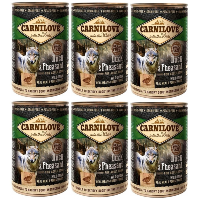 Carnilove Adult Wild Meat Kaczka z bażantem to mokra, pełnoporcjowa karma o wysokiej zawartości mięsa i bez dodatku zbóż przeznaczona dla psów dorosłych wszystkich ras. Karmy Carnilove nawiązują składem do diety dzikich psów, czyli diety opartej na mięsie, ale niezawierającej zbóż i ziemniaków.