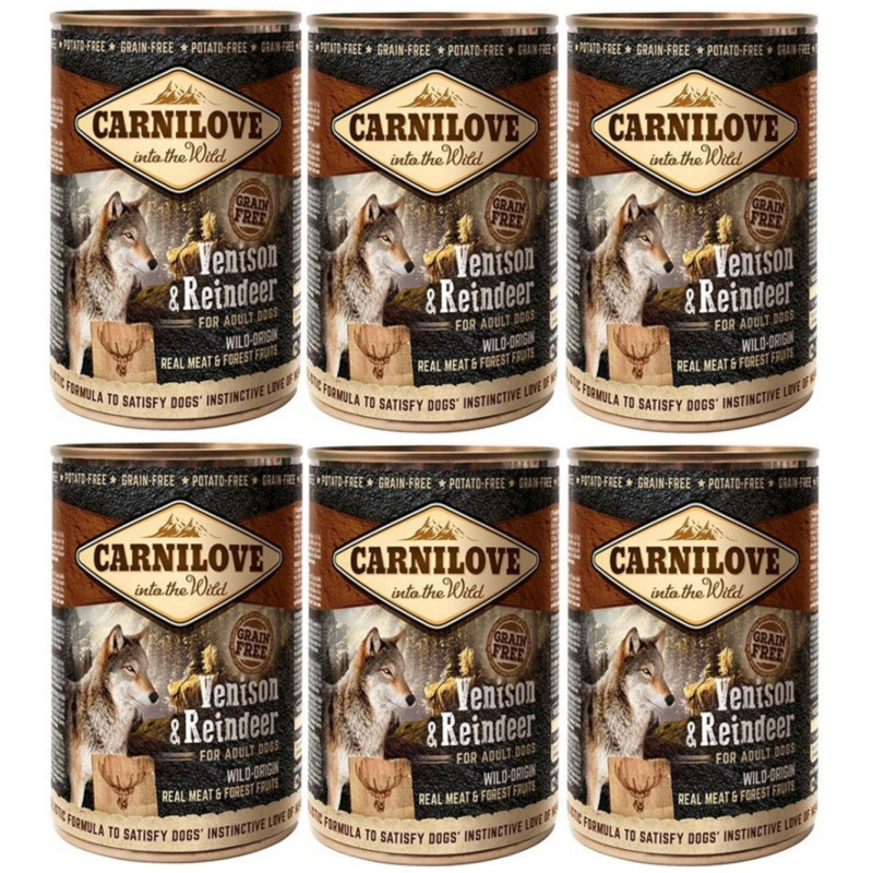Carnilove Adult Wild Meat Dziczyzna z reniferem to mokra, pełnoporcjowa karma o wysokiej zawartości mięsa i bez dodatku zbóż przeznaczona dla psów dorosłych wszystkich ras. Karmy Carnilove nawiązują składem do diety dzikich psów, czyli diety opartej na mięsie, ale niezawierającej zbóż i ziemniaków.