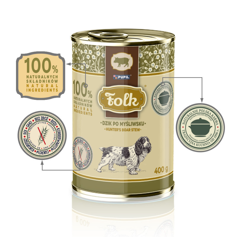 Główne cechy karmy mokrej Folk Dzik: