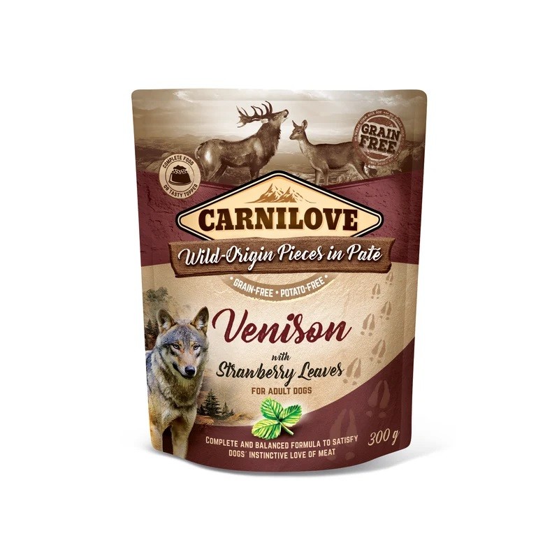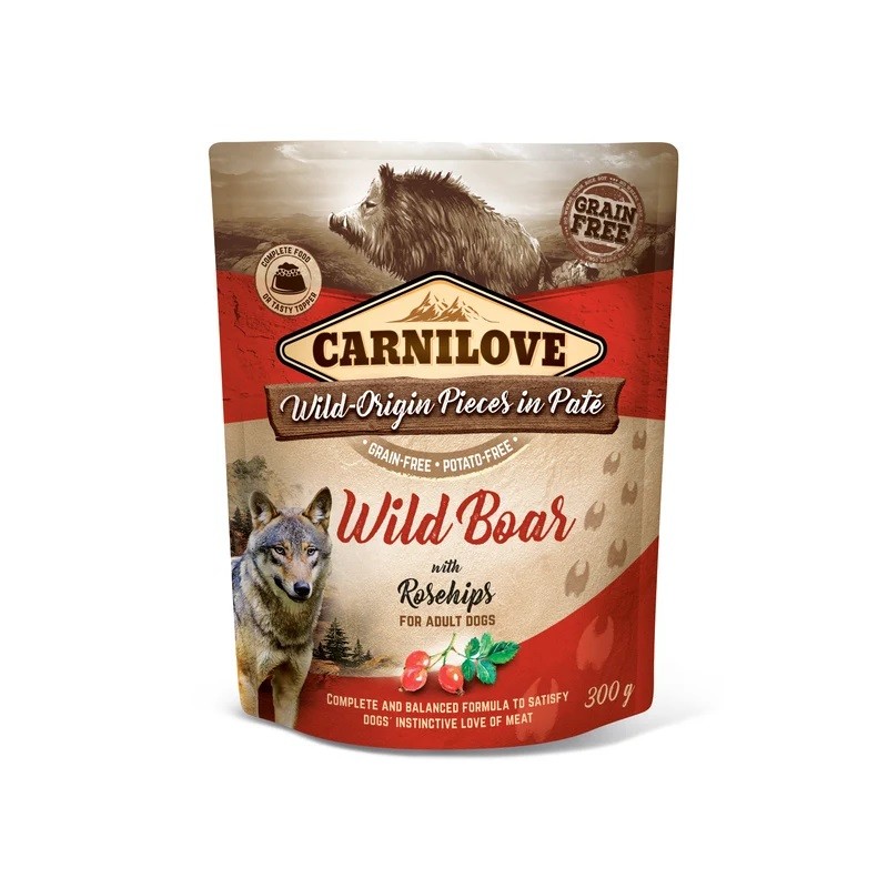 Carnilove Adult Pouch to mokra, pełnoporcjowa karma o wysokiej zawartości mięsa i bez dodatku zbóż przeznaczona dla psów dorosłych wszystkich ras. Karmy Carnilove nawiązują składem do diety dzikich psów, czyli diety opartej na mięsie, ale niezawierającej zbóż i ziemniaków. Karmę zawiera bardzo wysoką ilość mięsa na poziomie 85%.