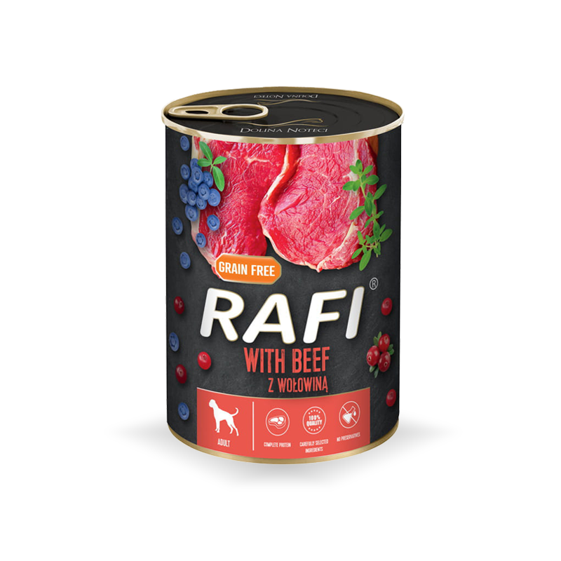 Karmy Rafi są zbilansowane pod kątem zawartości składników mineralnych i witamin w oparciu o nowoczesne normy żywieniowe. Gwarantują prawidłowe zmineralizowanie kości i zębów oraz prawidłowy przebieg wszystkich procesów metabolicznych. Bazują na produktach pochodzenia mięsnego, dlatego są zalecane w żywieniu psów wszystkich ras. Dodatek oleju lnianego dostarcza kwasów tłuszczowych n–3 i n–6, witaminy E oraz szeregu związków biologicznie czynnych o właściwościach przeciwzapalnych, a także fitosteroli. Oprócz regulacji metabolizmu lipidów wpływają one na poprawę funkcjonowania przewodu pokarmowego. Karmy Rafi charakteryzują się wysokimi współczynnikami strawności wszystkich składników odżywczych i są dopasowane do wymogów żywienia zwierząt.