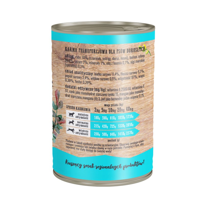 Wiejska Zagroda Rybna uczta to pełnoporcjowa mokra karma dla psów.