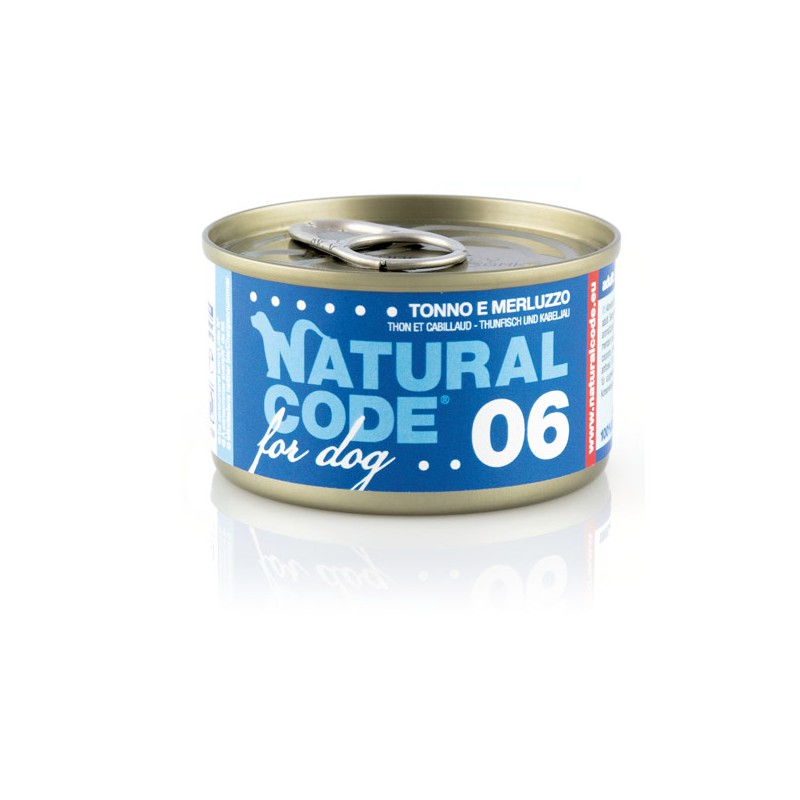Natural Code DOG 06 Tuna and Codfish to połączenie tuńczyka i dorsza, które zaspokoi gust psich smakoszy lubiących ryby. Źródłem jodu, witaminy A i kwasów tłuszczowych ważnych dla zdrowia skóry i sierści jest dorsz. Tuńczyk i ryż dostarczają wysokowartościowe białko i błonnik potrzebny do prawidłowego funkcjonowania jelit.