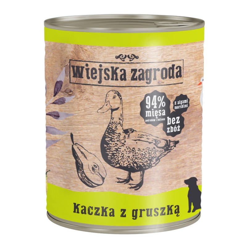 Wiejska Zagroda Kaczka z Gruszką to pełnoporcjowa mokra karma dla psów.