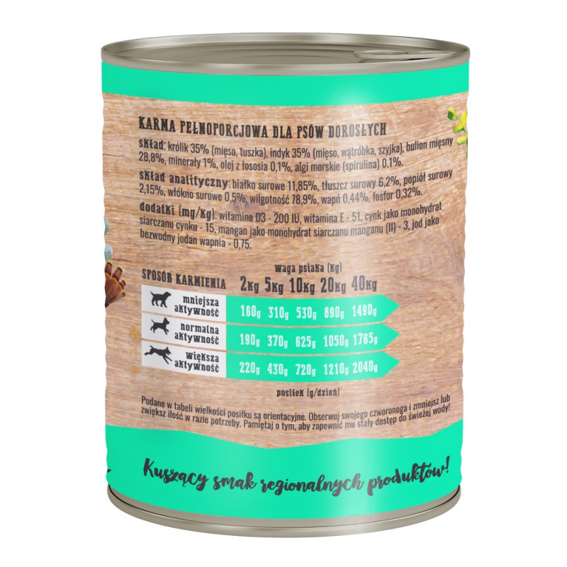 Wiejska Zagroda Królik z Indykiem to pełnoporcjowa mokra karma dla psów.