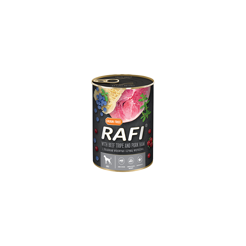 Karmy Rafi są zbilansowane pod kątem zawartości składników mineralnych i witamin w oparciu o nowoczesne normy żywieniowe. Gwarantują prawidłowe zmineralizowanie kości i zębów oraz prawidłowy przebieg wszystkich procesów metabolicznych. Bazują na produktach pochodzenia mięsnego, dlatego są zalecane w żywieniu psów wszystkich ras. Dodatek oleju lnianego dostarcza kwasów tłuszczowych n–3 i n–6, witaminy E oraz szeregu związków biologicznie czynnych o właściwościach przeciwzapalnych, a także fitosteroli. Oprócz regulacji metabolizmu lipidów wpływają one na poprawę funkcjonowania przewodu pokarmowego. Karmy Rafi charakteryzują się wysokimi współczynnikami strawności wszystkich składników odżywczych i są dopasowane do wymogów żywienia zwierząt.