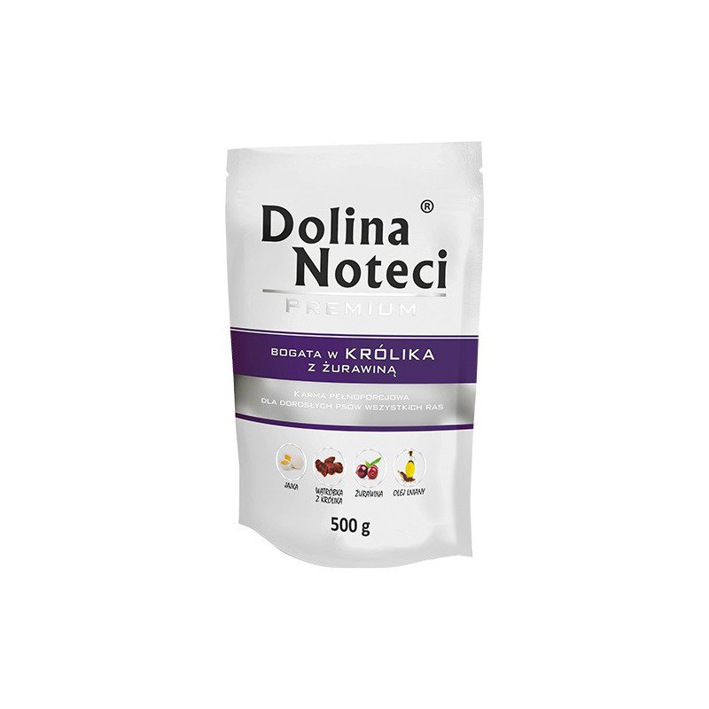 Mokra karma dla psów Dolina Noteci Premium zawiera składniki wyłącznie wysokiej jakości, charakteryzujące się wysoka wartością odżywczą. Głównym składnikiem jest mięso, źródło lekkostrawnego białka, które gwarantuje wysoką smakowitość karmy. Żurawina, olej lniany czy jukka dostarczają równie ważnych składników odżywczych. Karma dla psów Dolina Noteci Premium nie zawiera glutenu i odznacza się dobrą tolerancją.