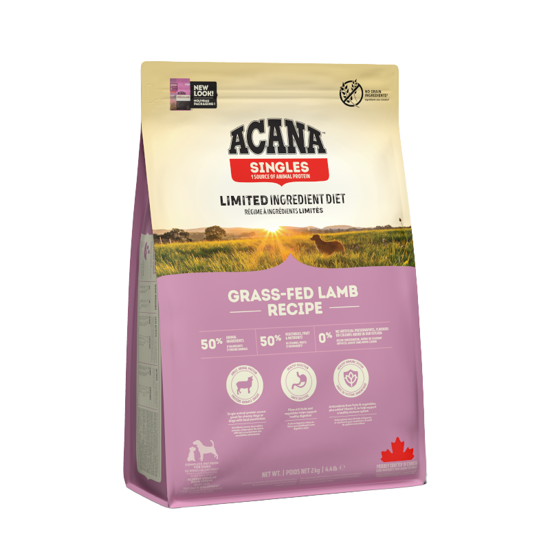 Bezzbożowa ACANA SINGLES Grass-Fed Lamb to karma monobiałkowa, która zawiera 50% jagnięciny, będącej źródłem łatwo przyswajalnego białka zwierzęcego. Idealne rozwiązanie dla psów wrażliwych wszystkich ras, z wyjątkiem szczeniąt dużych ras.