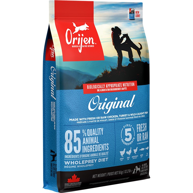 Karma Orijen Original składa się z mięsa kurczaka, chrząstek, organów, ryb oraz jaj. Wszystkie te składniki zawierają niezbędne składniki odżywcze, których Twój pies potrzebuje do długiego i zdrowego życia. Wszystkie psy, niezależnie od rasy i wielkości, są mięsożercami - biologicznie przystosowanymi do diety bogatej w różne gatunki mięs, z dodatkiem warzyw, owoców i traw. Dodatek liofilizowanej wątroby z kurczaka i indyka podkreślają walory smakowe karmy Orijen, sprawiając że jest pysznym kąskiem nawet dla wybrednych psów, a zawartość ziół oraz traw wspomaga naturalne procesy trawienne, wzmacnia organy oraz oczyszcza organizm z toksyn. Nienasycone kwasy tłuszczowe pochodzące ze świeżych ryb sprzyjają dobremu funkcjonowaniu układu immunologicznego i nerwowego psa, a także poprawiają także wygląd skóry i sierści.