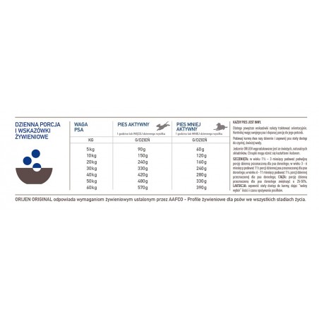Karma Orijen Original składa się z mięsa kurczaka, chrząstek, organów, ryb oraz jaj. Wszystkie te składniki zawierają niezbędne składniki odżywcze, których Twój pies potrzebuje do długiego i zdrowego życia. Wszystkie psy, niezależnie od rasy i wielkości, są mięsożercami - biologicznie przystosowanymi do diety bogatej w różne gatunki mięs, z dodatkiem warzyw, owoców i traw. Dodatek liofilizowanej wątroby z kurczaka i indyka podkreślają walory smakowe karmy Orijen, sprawiając że jest pysznym kąskiem nawet dla wybrednych psów, a zawartość ziół oraz traw wspomaga naturalne procesy trawienne, wzmacnia organy oraz oczyszcza organizm z toksyn. Nienasycone kwasy tłuszczowe pochodzące ze świeżych ryb sprzyjają dobremu funkcjonowaniu układu immunologicznego i nerwowego psa, a także poprawiają także wygląd skóry i sierści.