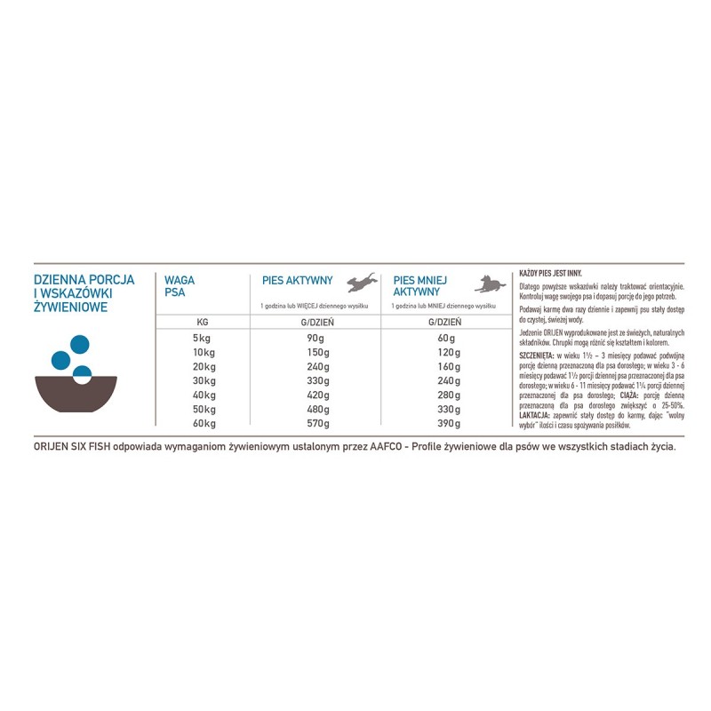 Pełnoporcjowa sucha karma o bardzo dużej zawartości mięsa 6 gatunków ryb, przeznaczona dla psów wszystkich ras, bez względu na wiek (zarówno dla szczeniąt, psów dorosłych jak i starszych).