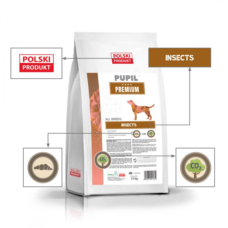 Najważniejsze cechy suchej karmy PUPIL PREMIUM INSECTS 12 kg: