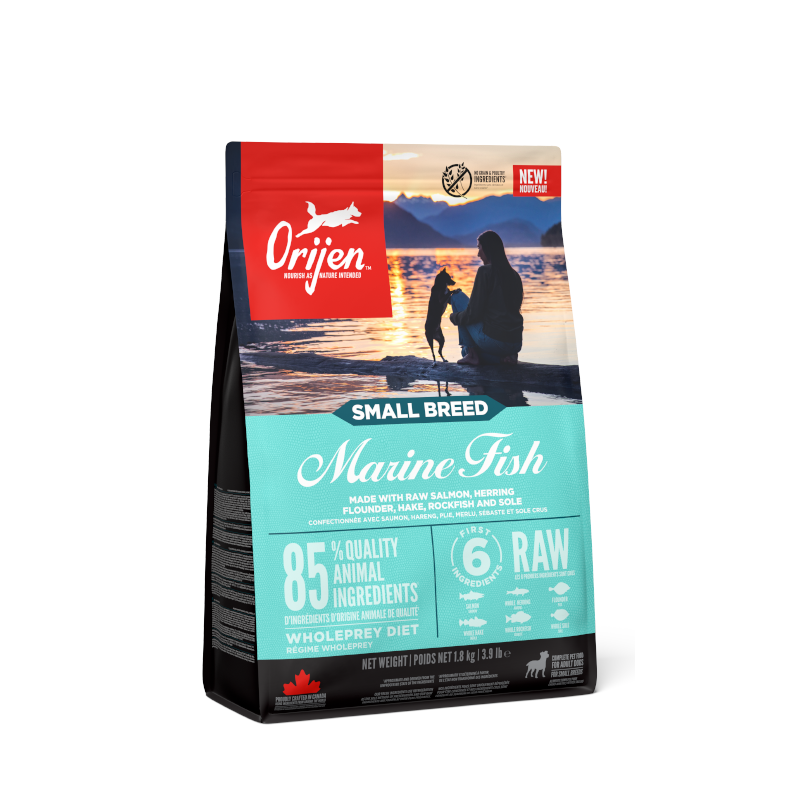 Sucha karma stworzona specjalnie dla mniejszych psów. ORIJEN Small Breed Marine Fish to pełnoporcjowe jedzenie dla psów małych ras w wieku dorosłym. Doskonale odżywia mikropsy, zapewniając im zdrowe, szczęśliwe życie.