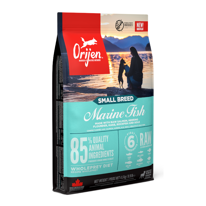 Sucha karma stworzona specjalnie dla mniejszych psów. ORIJEN Small Breed Marine Fish to pełnoporcjowe jedzenie dla psów małych ras w wieku dorosłym. Doskonale odżywia mikropsy, zapewniając im zdrowe, szczęśliwe życie.