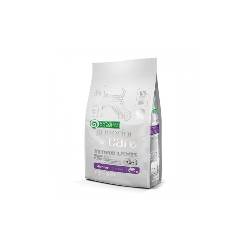 Zalety karmy Nature's Protection Superior Care White Dogs Junior Small Breeds Salmon: