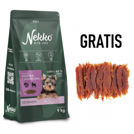 Nekko to pełnoporcjowa, sucha karma dla szczeniąt, która wyróżnia się wysoką zawartością białka pochodzenia zwierzęcego oraz wyjątkową smakowitością. Karma pozbawiona jest kurczaka, zbóż, kukurydzy oraz soi. Nie znajdziesz w niej również szkodliwych konserwantów i sztucznych barwników.