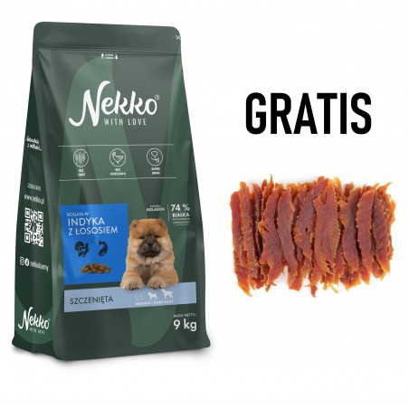 Nekko to pełnoporcjowa, sucha karma dla szczeniąt, która wyróżnia się wysoką zawartością białka pochodzenia zwierzęcego oraz wyjątkową smakowitością. Karma pozbawiona jest kurczaka, zbóż, kukurydzy oraz soi. Nie znajdziesz w niej również szkodliwych konserwantów i sztucznych barwników.
