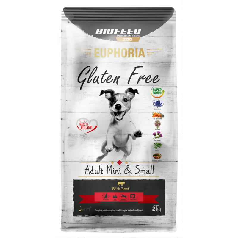 Karma Biofeed Euphoria Grain Free Adult to receptura oparta na pysznej wołowinie, bez białka kurczaka. Dobrze zbilansowana receptura ze składnikami najwyższej jakości z składem opracowany z myślą o wymagających psach dorosłych.