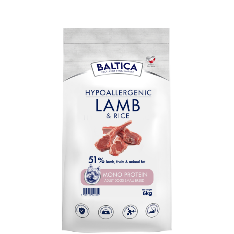 Baltica Nutraceutic Hypoallergenic Adult Lamb & Rice to hipoalergiczna formuła stworzona na bazie suszonego mięsa jagnięcego oraz lekkostrawnego ryżu. Posiłek wzbogacony wyjątkową kompozycją ziół i nutraceutyków o olbrzymich właściwościach prozdrowotnych. Odpowiedni dla psów wybrednych ras małych i miniaturowych z problemami trawiennymi lub nietolerancją pokarmową. Nie zawiera glutenu, kurczaka oraz roślin strączkowych.