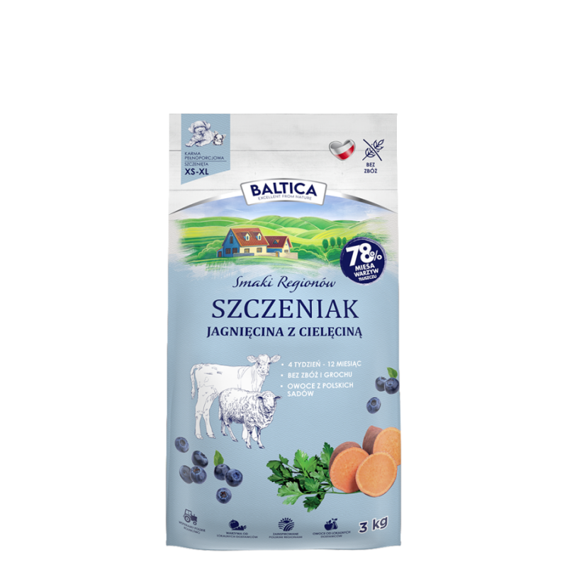 Skład: 52,5% jagnięciny, cielęciny i tłuszczu wołowego (w tym: 26,5 % suszona jagnięcina, 15% suszona cielęcina, 11% tłuszcz wołowy), 25,5% warzywa (bataty, pietruszka (korzeń i natka)), 12% owoce (jabłka, porzeczki, maliny, borówki), pulpa buraczana, drożdże piwne, skrobia ziemniaczana, minerały, zioła (ostropest plamisty, mięta, koper włoski), kompleks wspierający stawy (MSM (0,05%), siarczan glukozaminy (0,03%), siarczan chondroityny (0,015%)), kompleks omega 3 i 6, MOS, FOS.