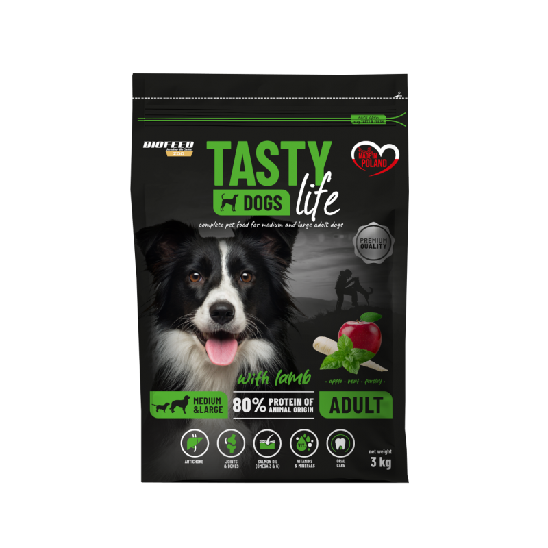 Biofeed Tasty Dogs Jagnięcina to starannie opracowana karma premium, stworzona z myślą o psach średnich i dużych ras. Wysokiej jakości jagnięcina jako główne źródło białka dostarcza niezbędnych składników odżywczych, wspierając zdrowie i dobrą kondycję Twojego psa. Zbilansowana formuła zapewnia optymalne wsparcie dla układu trawiennego, odpornościowego oraz zdrowy rozwój mięśni i stawów.
