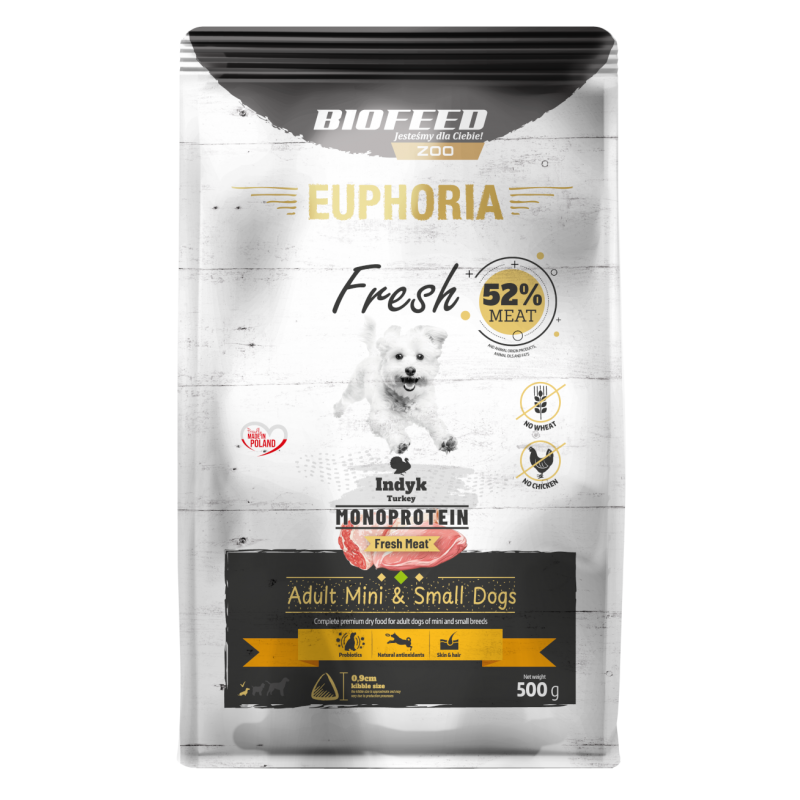 Biofeed Euphoria Fresh Meat Adult Indyk Mono XS/S 500g Małe rasy