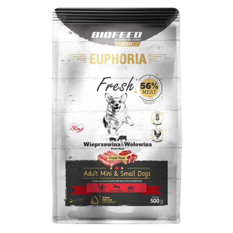 Biofeed Euphoria Fresh Meat Adult Wieprzowina Wołowina XS/S 500g Małe rasy