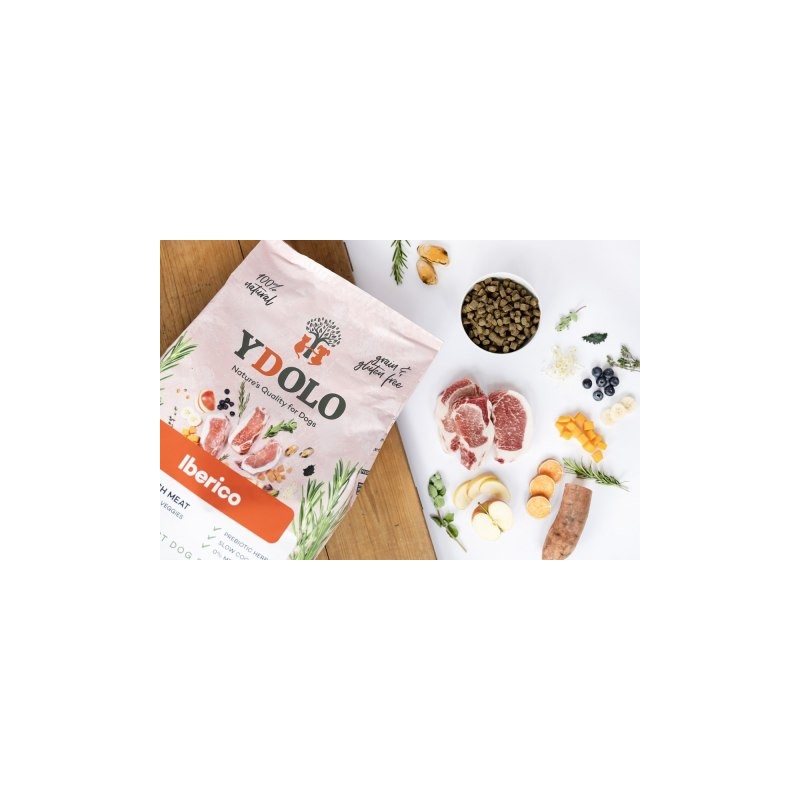 Karma YDOLO Iberico zachwyca wyjątkowym smakiem najbardziej wymagające psie podniebienia. Do jej produkcji użyto świeżą wieprzowinę Iberico (75%) oraz naturalne  składniki wspierające zdrowie i dobrą kondycję psa oraz dbające o jego długie, zdrowe i szczęśliwe życie - warzywa, owoce, zioła, dodatki superfood.