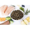 Półwilgotna, pełnoporcjowa karma dla dorosłych psów ze świeżego kurczaka (45%) i ryb morskich (30%) z dodatkiem naturalnych składników wspierających zdrowie i dobrą kondycję psa oraz dbają o jego długie, zdrowe i szczęśliwe życie. Świeże składniki i unikalny proces produkcji miękkich granulek zapewniają wyjątkowy smak i aromat karmy, który psy wręcz uwielbiają. BEZ gliceryny, zbóż, grochu, dodatku tłuszczu, mączki mięsnej i wielu innych zbędnych dodatków.