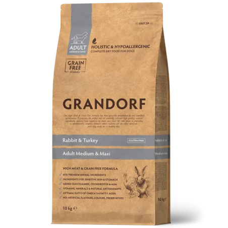 Bezzbożowa, hipoalergiczna formuła w połączeniu z dietetycznym mięsem królika i indyka pomaga zapobiegać reakcjom alergicznym i nietolerancjom pokarmowym, zapewniając zdrowie układu odpornościowego i trawiennego.
