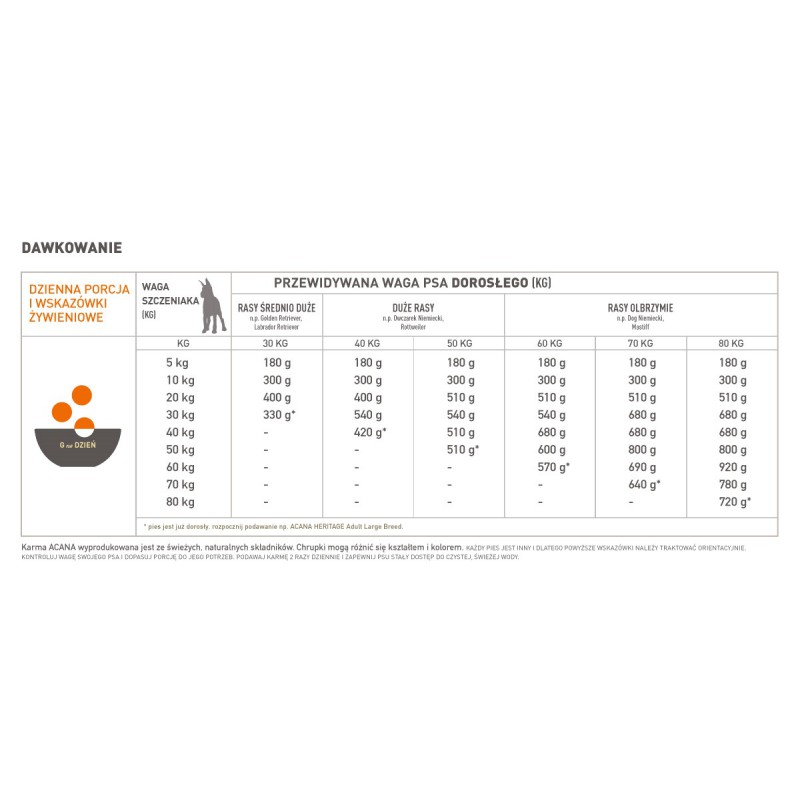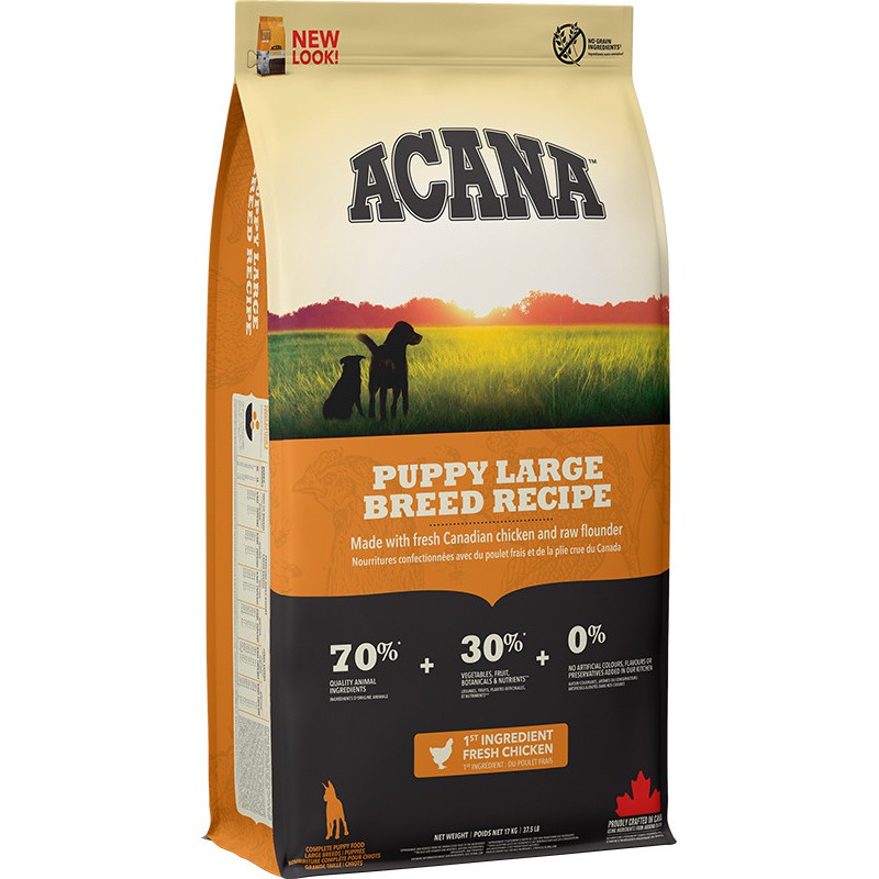 Oparta na naturalnych składnikach, pełnowartościowa i zbilansowana sucha karma dla psów szczeniąt dużych i olbrzymich ras. Acana Puppy Large jest bezzbożowa i zawiera wysokiej jakości białko pochodzące od drobiu z chowu bezklatkowego.