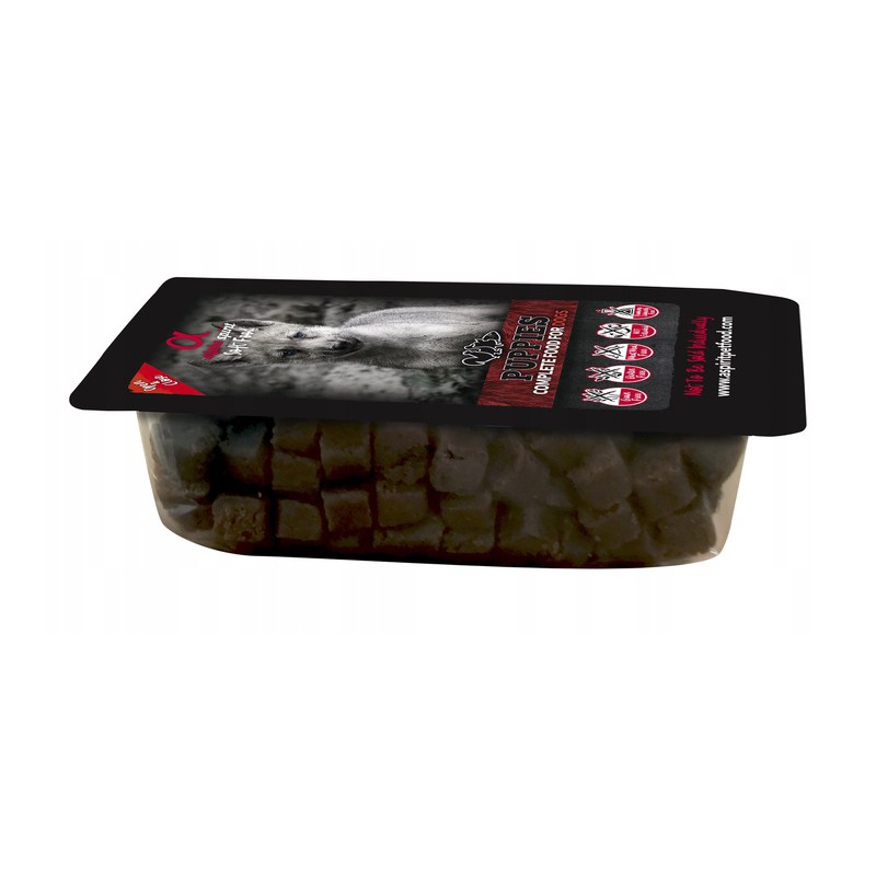 Do oferty naszych wyjątkowych karm suchych miękkich dołącza specjalna formuła dedykowana szczeniętom. Jej skład to aż 85% świeżego mięsa i ryb. Produkt jest w 100% naturalny, przygotowywany w niskiej temperaturze, dzięki czemu karma zachowuje właściwości odżywcze. Wysokiej jakości składniki, otrzymujemy od lokalnych dostawców. Mają one wpływ na zdrową i lśniącą sierść czworonoga. Zawiera aż 85% mięsa, kwasy omega, wzmacniające układ odpornościowy.
