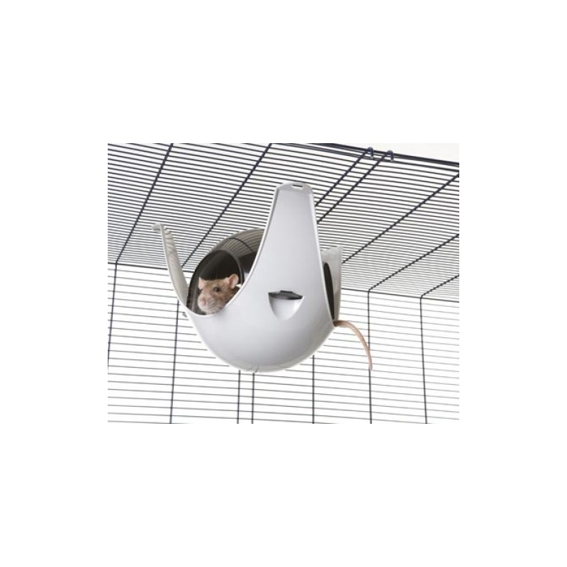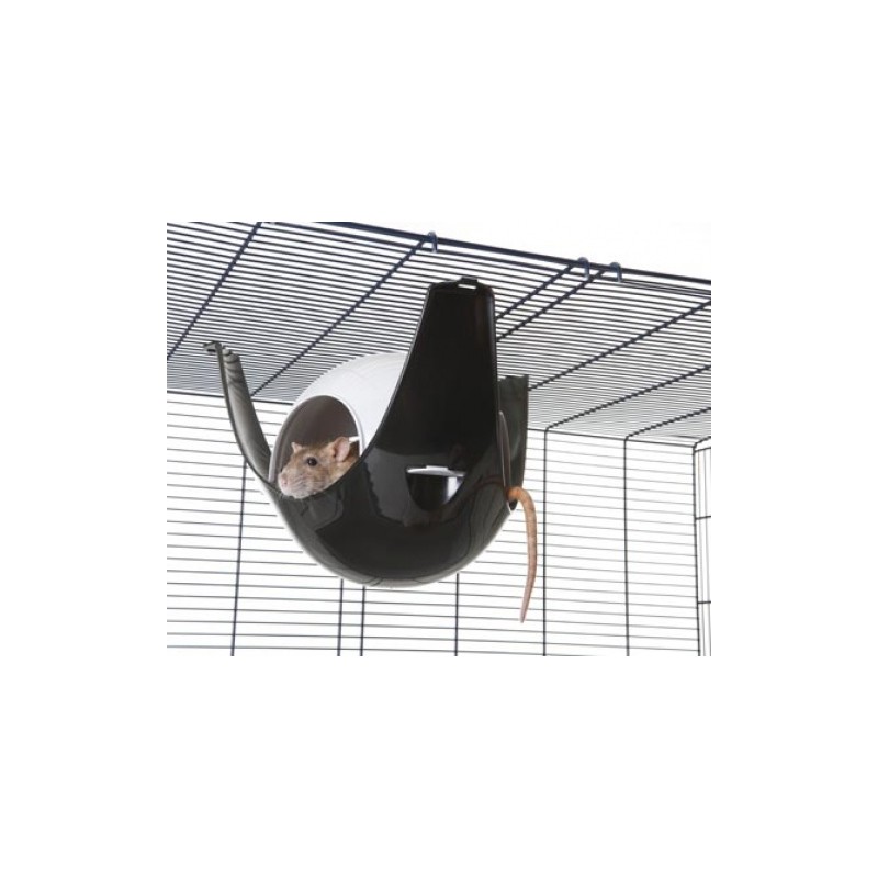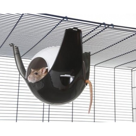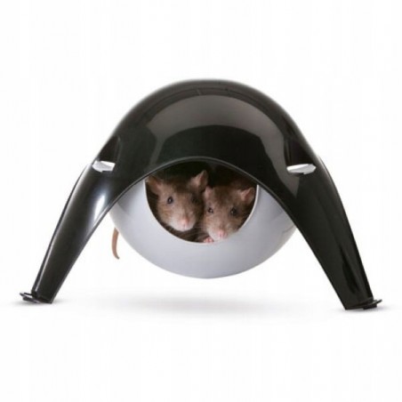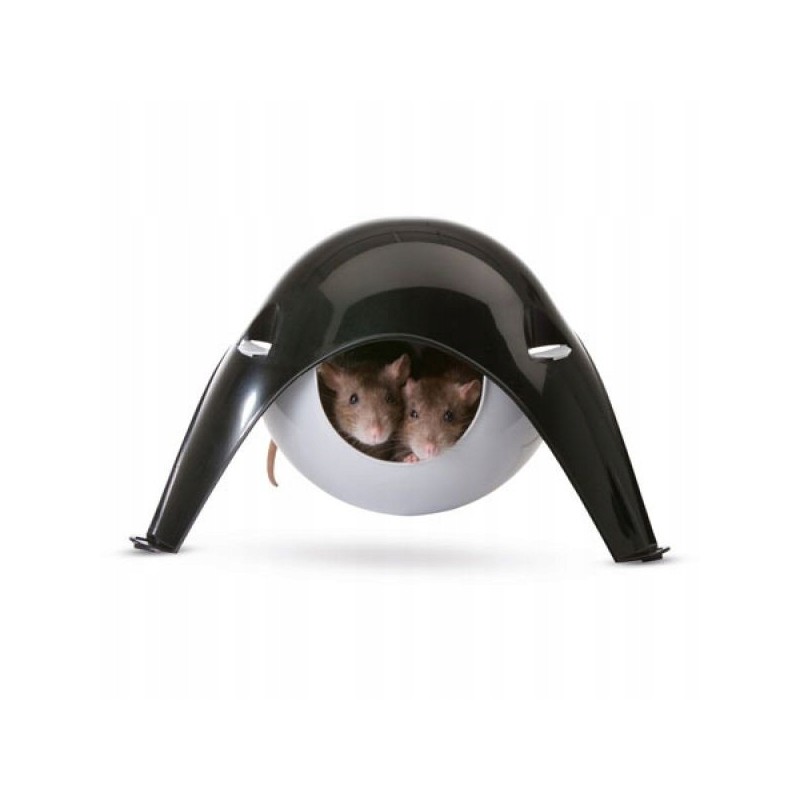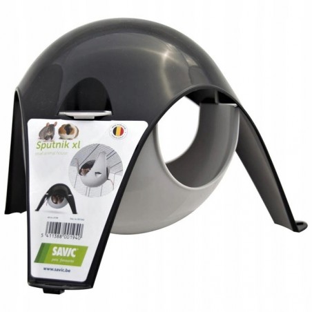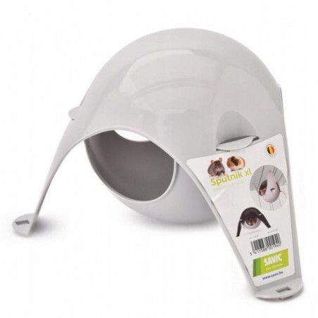 Bardzo ważne jest, aby gryzonie, takie jak szczury, chomiki, małe fretki lub małe świnki morskie, miały przytulne schronienie, w którym czują się bezpiecznie. Wiszący domek Savic Sputnik ma oryginalny wygląd statku kosmicznego i może być umieszczony zarówno na podłodze klatki, jak i podwieszony pod jej sufitem. Zwiększa to poczucie bezpieczeństwa zwierzęcia podczas chwil relaksu lub obserwacji otoczenia.