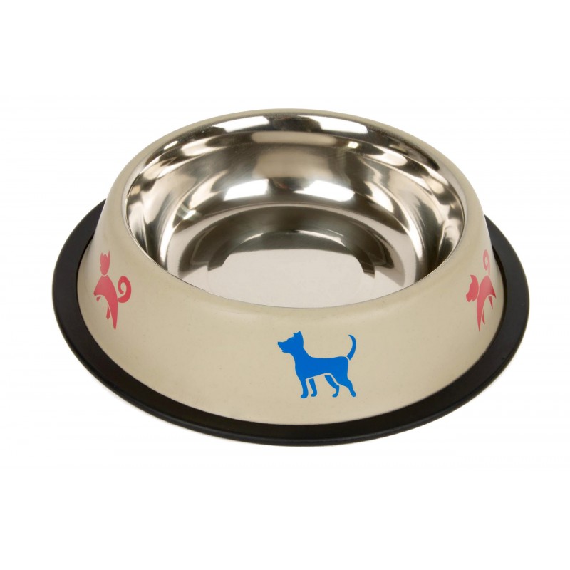 Miska metalowa charakteryzuje się dużą trwałością, gdyż została wykonana z wysokiej jakości materiałów. Ponadto dzięki gumie umocowanej na dolnej części miski - nie przesuwa się tak łatwo oraz nie rysuje podłóg.