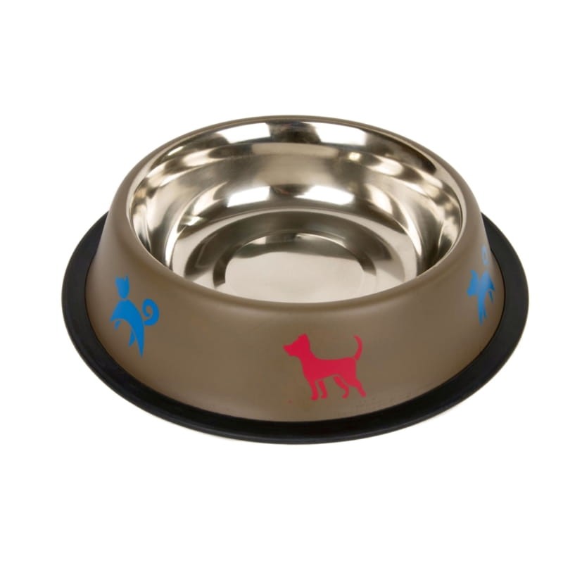 Miska metalowa charakteryzuje się dużą trwałością, gdyż została wykonana z wysokiej jakości materiałów. Ponadto dzięki gumie umocowanej na dolnej części miski - nie przesuwa się tak łatwo oraz nie rysuje podłóg.