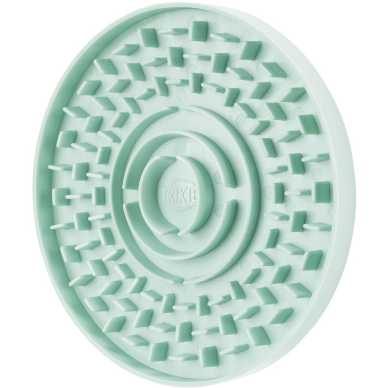 Tacka Junior Licking Plate Lick’n'Snack przeznaczona jest dla szczeniąt lub dorosłych psów małych ras. Ma działanie uspokajające i odstresowujące przy jednoczesnym dbaniu o higienę jamy ustnej psa. Tackę należy pokryć ulubioną mokrą karmą, przekąską lub pastą, wypełniając wszystkie szczeliny. Napełnioną można włożyć do zamrażarki, pozwoli to na wydłużenie czasu wylizywania przysmaków. Pies będzie wylizywał matę aby zdobyć smakołyk. Powtarzające się lizanie uwalnia endorfiny, działa uspokajająco oraz utrzymuje go w stanie skupienia i zaangażowania. Ponadto wylizywanie pomaga usunąć bakterie i utrzymuje świeży oddech.