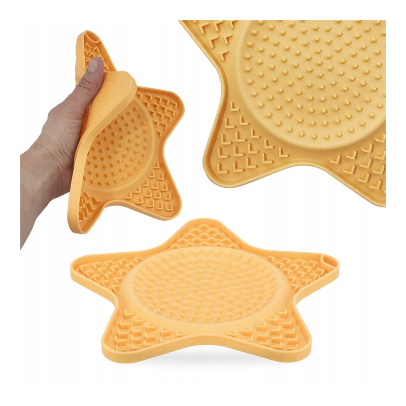 Tacka Licking Plate Lick’n'Snack ma działanie uspokajające i odstresowujące przy jednoczesnym dbaniu o higienę jamy ustnej psa. Tackę należy pokryć ulubioną mokrą karmą, przekąską lub pastą, wypełniając wszystkie szczeliny. Dzięki przyssawkom na spodzie maty można przyczepić ją no. do krawędzi wanny, przez co idealnie sprawdzi się również podczas kąpieli zwierzęcia, zajmie jego uwagę i złagodzi stres związany z kąpielą. Powtarzające się lizanie uwalnia endorfiny, działa uspokajająco oraz utrzymuje go w stanie skupienia i zaangażowania. Ponadto wylizywanie pomaga usunąć bakterie i utrzymuje świeży oddech.