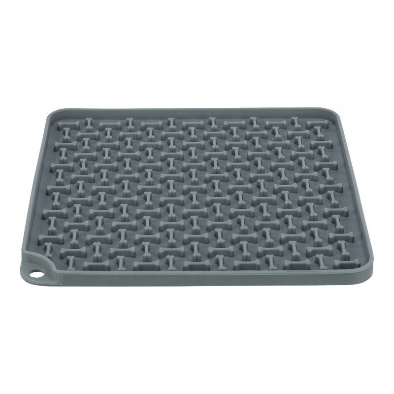 Tacka Licking Plate Lick’n'Snack ma działanie uspokajające i odstresowujące przy jednoczesnym dbaniu o higienę jamy ustnej psa. Tackę należy pokryć ulubioną mokrą karmą, przekąską lub pastą, wypełniając wszystkie szczeliny. Dzięki przyssawkom na spodzie maty można przyczepić ją no. do krawędzi wanny, przez co idealnie sprawdzi się również podczas kąpieli zwierzęcia, zajmie jego uwagę i złagodzi stres związany z kąpielą. Powtarzające się lizanie uwalnia endorfiny, działa uspokajająco oraz utrzymuje go w stanie skupienia i zaangażowania. Ponadto wylizywanie pomaga usunąć bakterie i utrzymuje świeży oddech.