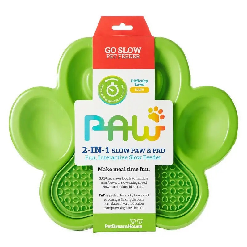 Pet Dream House Paw 2in1 została stworzona z myślą o zdrowym rozwoju układu pokarmowego zwierzęcia. Przekarmianie prowadzi do groźnej otyłości. Dzięki specjalnemu projektowi miska sprawia, że czas posiłku jest wydłużony – uniemożliwia ona łapczywe pobieranie pokarmu przez psa. Codzienne korzystanie z niej sprawi, że pies będzie jeść wolniej, co sprzyja prawidłowemu trawieniu, a co za tym idzie – zmniejsza ryzyko wzdęć, wymiotów i otyłości u psów.