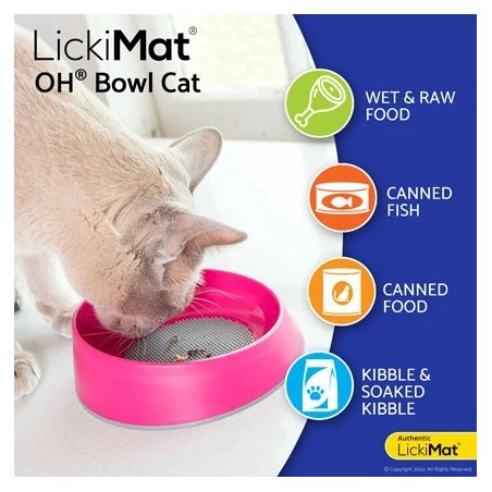OH Bowl Cat to miska dla kota, wspierająca zdrowie jamy ustnej. Stworzona przy współudziale lekarzy weterynarii. Specjalnie zaprojektowane, znajdujące się na dnie gumowe wypustki masują i oczyszczają język czworonoga z resztek pokarmu pod koniec posiłku. To pozwala na zredukowanie ilości bakterii znajdujących się w jamie ustnej i będących przyczyną wielu nieprzyjemnych dolegliwości (nieświeży oddech, stany zapalne, choroby zębów i dziąseł), nawet o 80%! Lizanie pomaga utrzymać zęby, dziąsła oraz język zwierzęcia w dobrej kondycji, pobudza ślinianki do większej produkcji śliny, uwalnia hormony odpowiedzialne za dobre samopoczucie, pozwala uporać się ze stresem i niepokojem. Lizanie jest niezwykle przyjemne dla kotów.