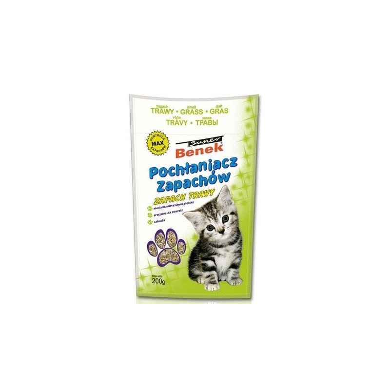 Pochłaniacz zapachów Benek to w 100% naturalny produkt, wspomagający działanie żwirków higienicznych, poprawiający ich chłonność, zwiększając wydajność i neutralizując nieprzyjemne zapachy. Skutecznie zapobiega przywieraniu żwirku do dna kuwety. Można stosować go również poza kuwetą, doskonale wiążąc płyny oraz likwidując przykre zapachy.