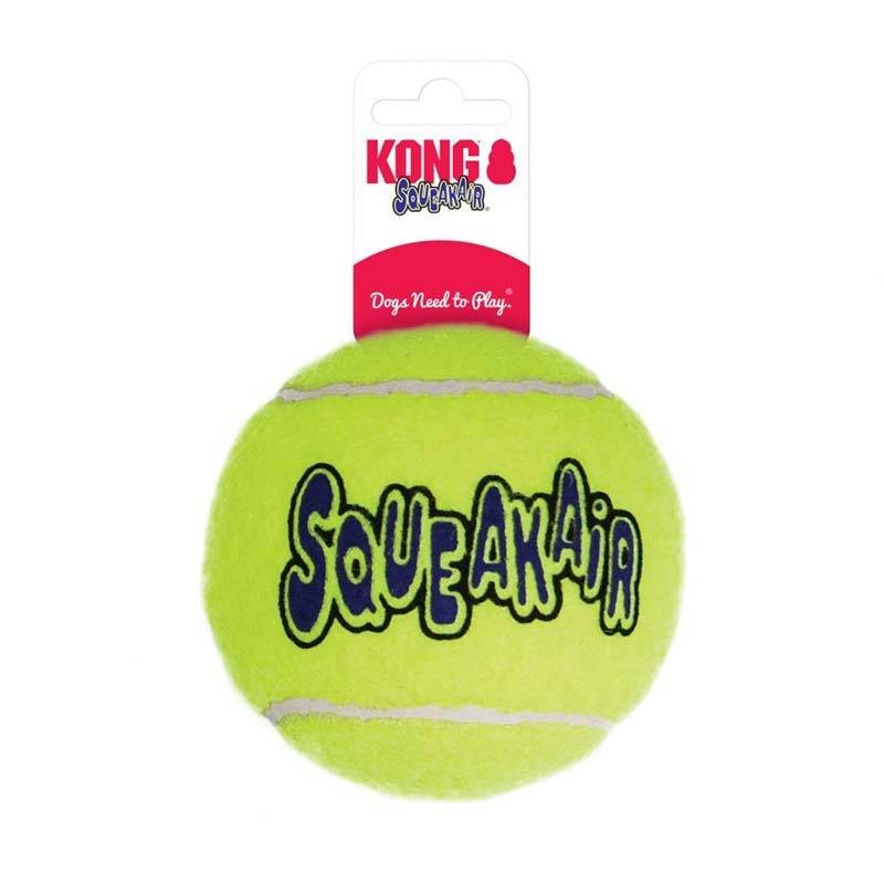 Kong Squeaker Ball to piłka tenisowa wykonana ze wzmocnionych materiałów. Z wierzchu pokryta jest specjalnym, nieścieralnym filcem, przez co jest odporna na psie zęby. Dodatkowo, poprzez tworzywo, z jakiego została wykonana, odbija się znacznie wyżej niż standardowe tego typu zabawki. W środku piłek zostały ukryte piszczałki, która dodatkowo zachęcają psiaka do zabawy.