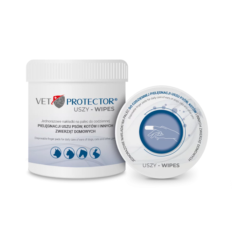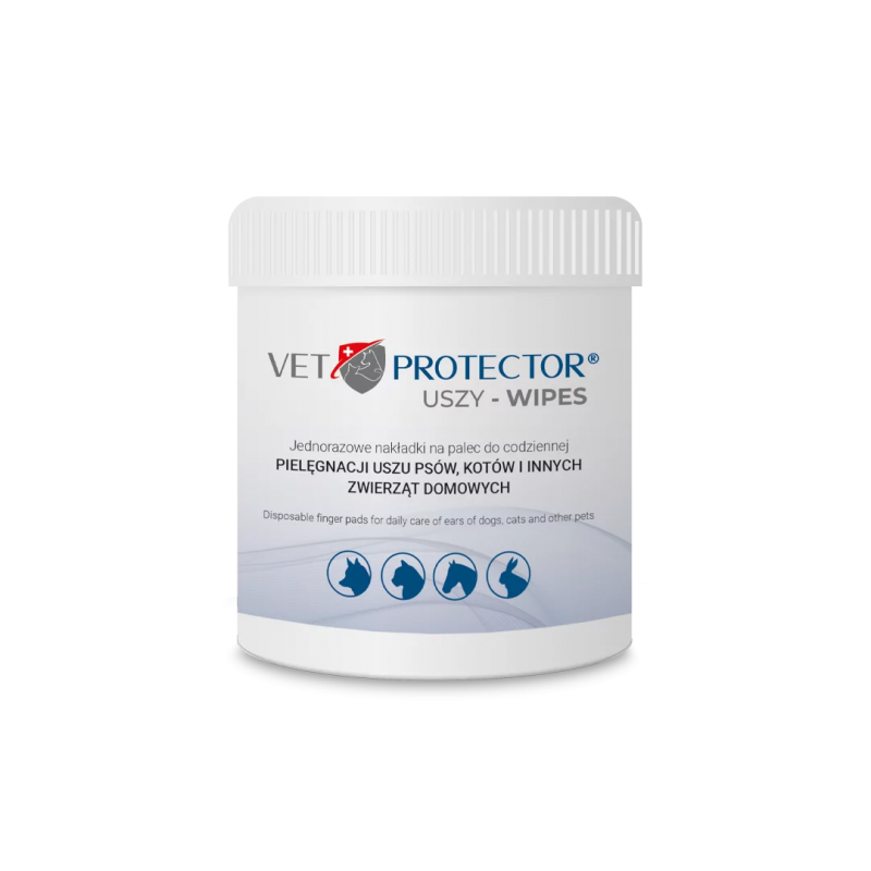 VET PROTECTOR® USZY – WIPES posiada starannie dobraną formułę składników aktywnych, dzięki której zapewnia skuteczną i wygodną pielęgnację wrażliwej skóry małżowiny usznej zwierząt.